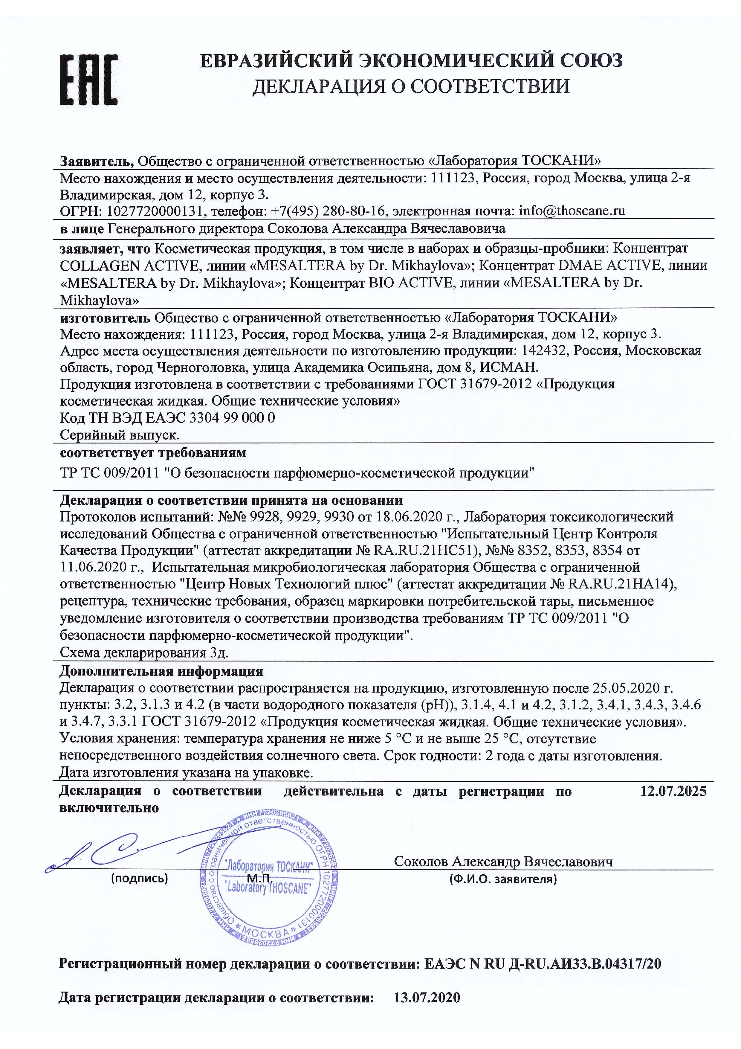 Mesaltera BIO ACTIVЕ CONCENTRATE, 20мл Активный концентрат для восстановления кожи