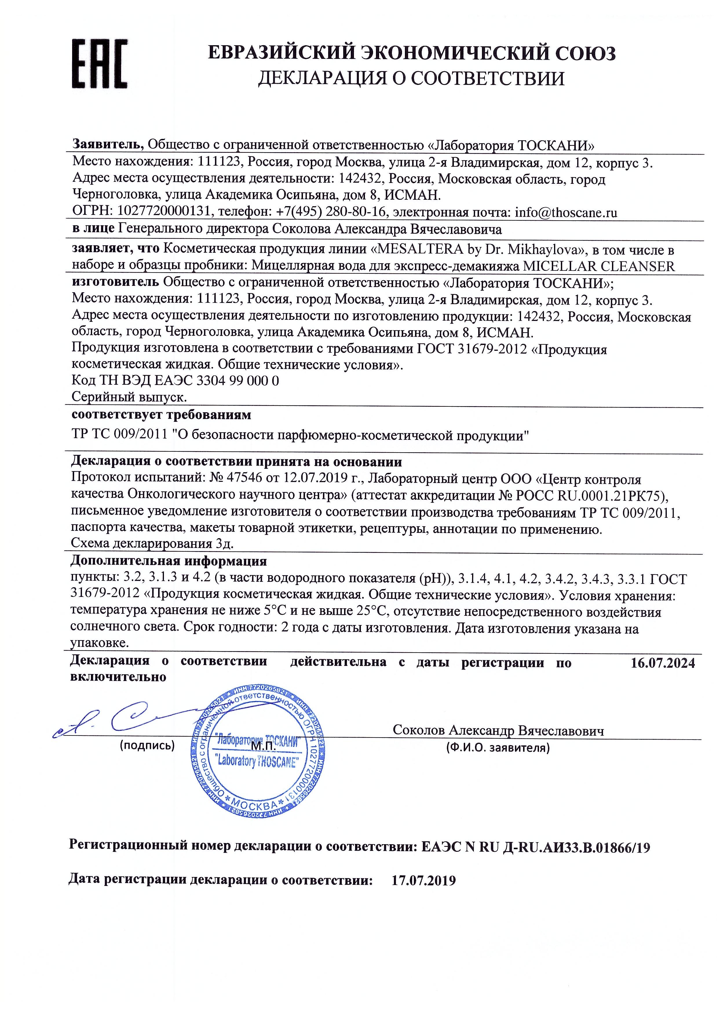 Mesaltera MICELLAR CLEANSER, 200 мл Мицелярная вода для экспресс демакияжа